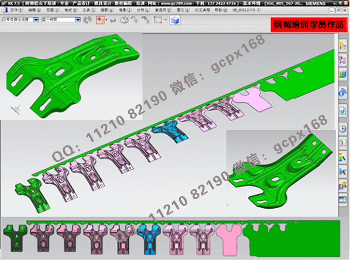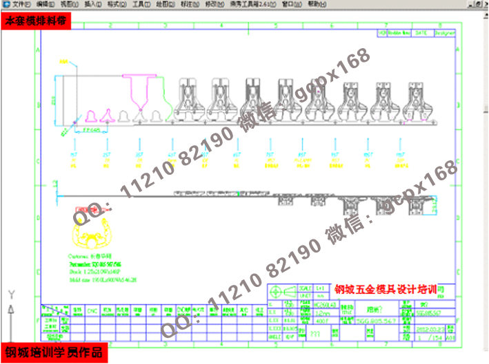 (11) 連續(xù)模設(shè)計(jì)實(shí)操:綜合理論知識(shí),運(yùn)用實(shí)際的模具設(shè)計(jì)流程(各類圖面處理>模架繪制>細(xì)部結(jié)構(gòu)設(shè)計(jì)>零件圖繪制>出圖),真正實(shí)現(xiàn)與工廠的無縫結(jié)合;